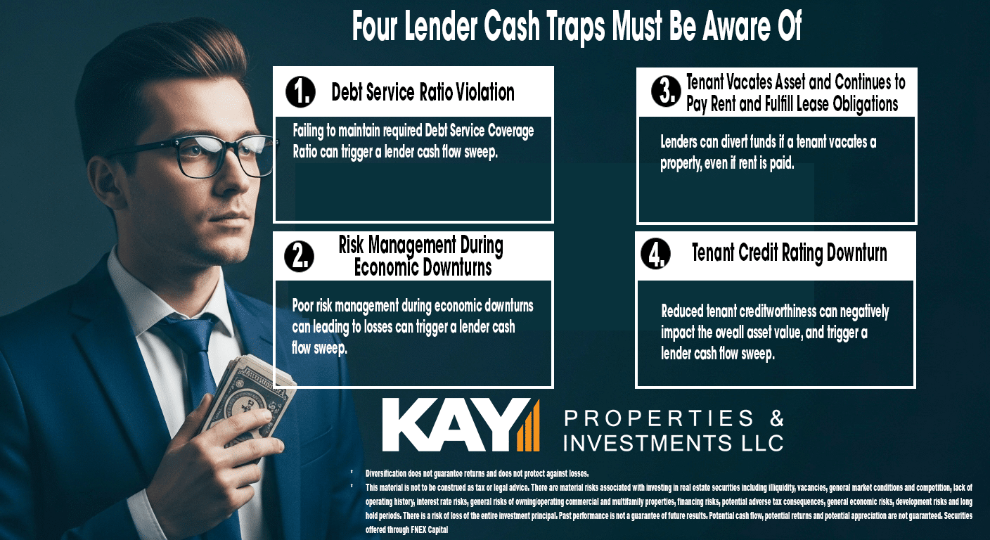 However, in addition to the normal risks associated with real estate, using leverage can also have many risks that many investors (especially DST, 1031 and 721 exchange investors) are unaware of. For example, here are four common lender cash trap provisions that investors should understand when using leverage for a 1031 exchange Delaware Statutory Trust investment. A cash trap occurs when certain conditions occur, and the lender can come in and "sweep" or divert a percentage of excess income created through the asset to pay down the commercial loan.